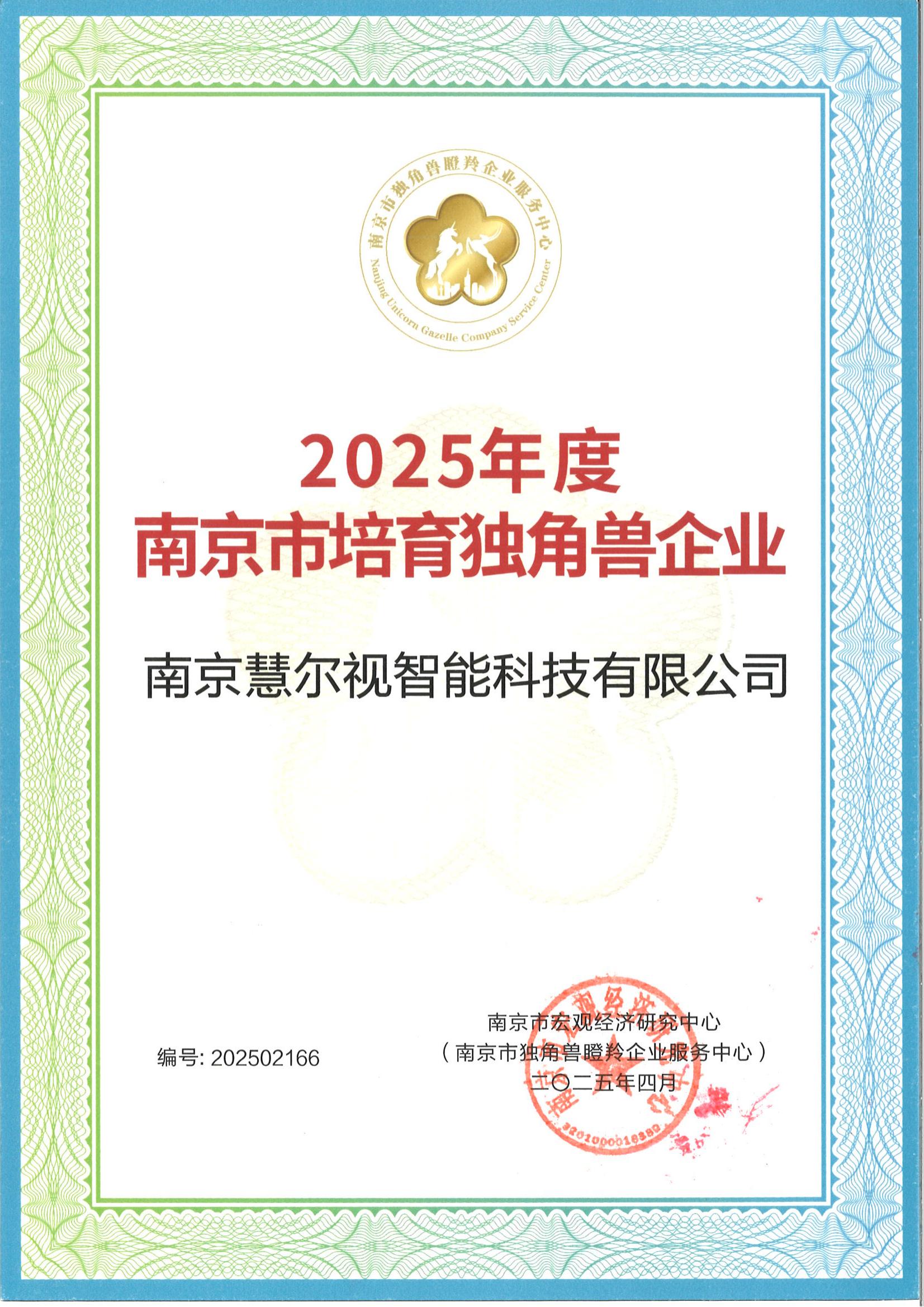 慧爾視榮膺“2025年度南京市培育獨(dú)角獸企業(yè)”稱號(hào)!